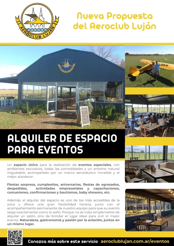Para quienes deseen conocer en detalle las instalaciones y los servicios incluidos, el Aeroclub ha dispuesto una sección especial en su sitio web: aeroclublujan.com.ar/eventos.